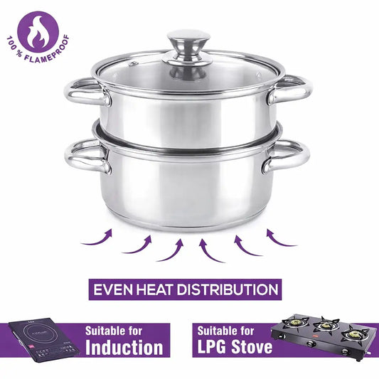 Premium 2-Tier Stainless Steel Food Steamer - with Glass Lid