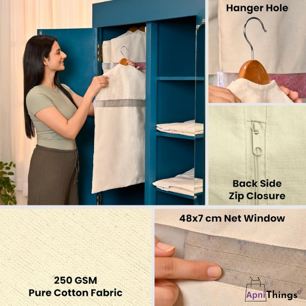 Premium Cotton Hanging Saree Covers with Zip- Large Size